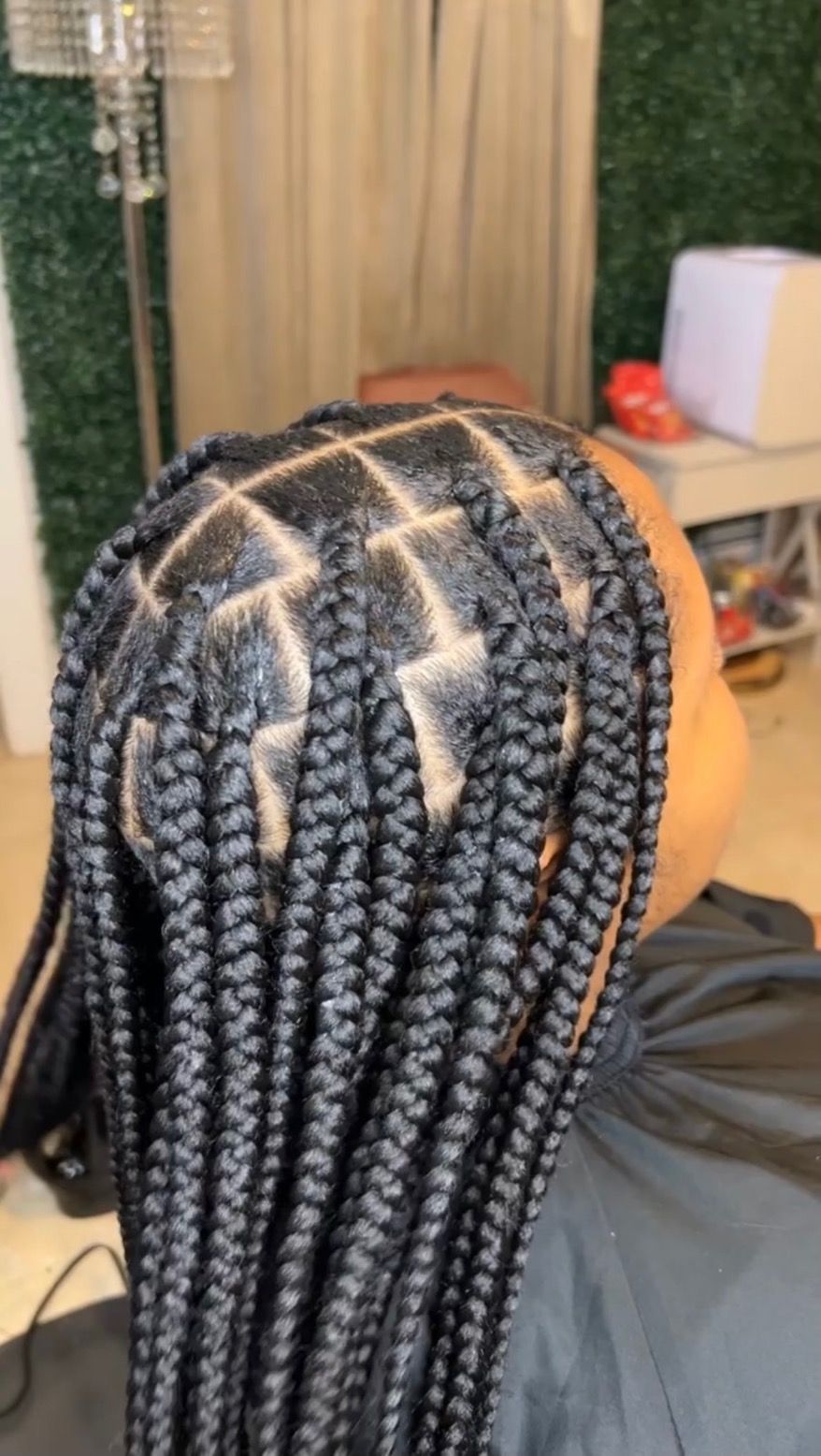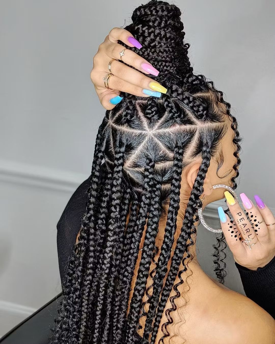 - Considerations: The choice of parting isn’t just about aesthetics—it can also impact how the weight of the braids is distributed across the scalp. Uniform, well-planned partings help ensure even tension, which is key for scalp health and the longevity of the style.
